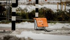 In de sneeuw ligt een tas van postbedrijf PostNL er verloren bij. In de Maasstraat in Dordrecht is een postbezorger zijn tas verloren. Een opvallende verschijning, zo’n grote oranje tas in de witte sneeuw. De tas was gelukkig leeg, dus er is als het goed is geen post verloren gegaan.