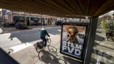 DORDRECHT – In meerdere bushokjes in Dordrecht zijn partijposters voor de gemeenteraadsverkiezingen van FVD-leider Lidewij de Vos beklad. Op de posters zijn onder meer een Hitlersnor, een hakenkruis en het woord ‘fascist’ aangebracht. ( Foto’s: Stolk Fotografie )